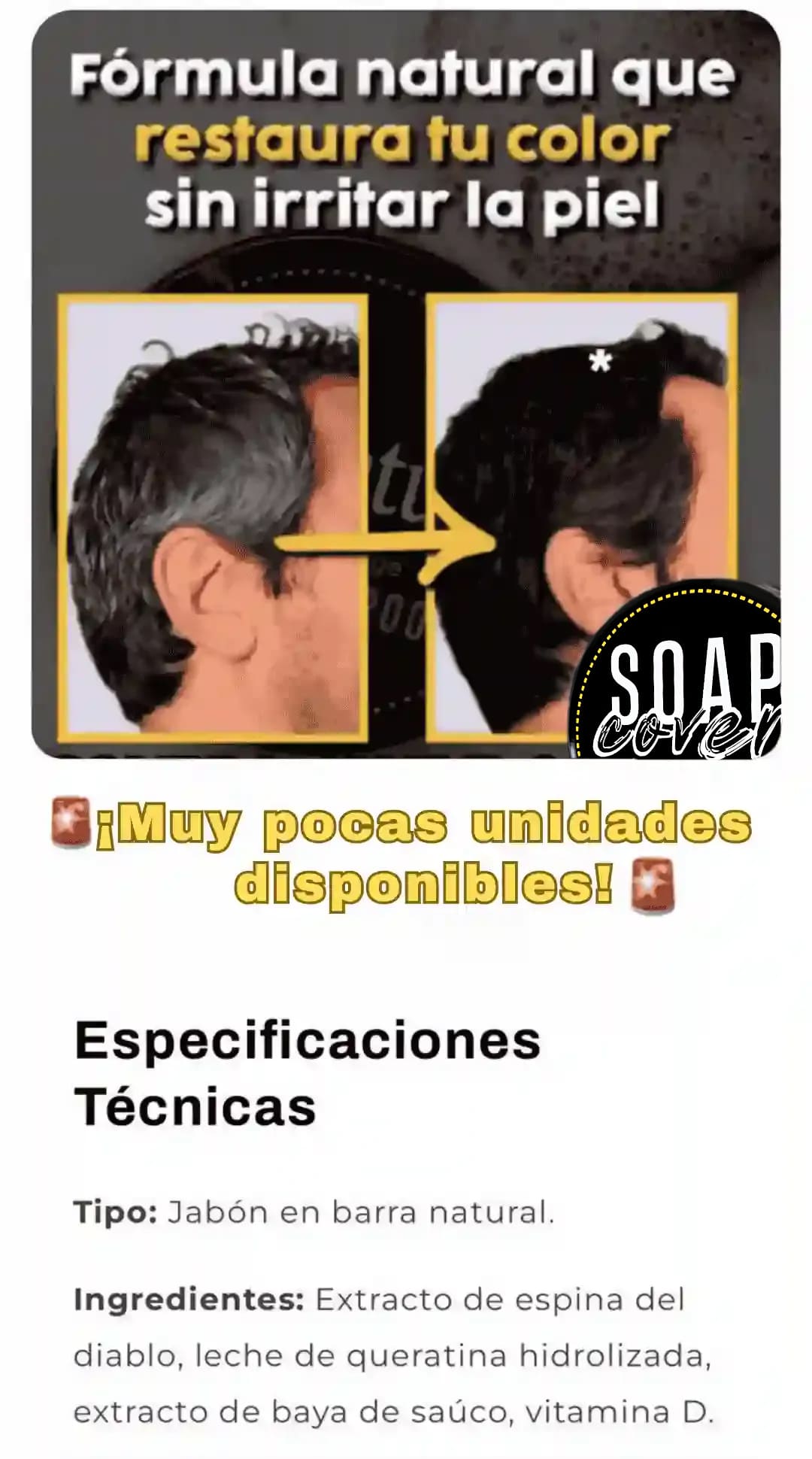 ¿Te miraste al espejo y no te reconociste? Con Soap Cover, restauras el color natural de tu cabello de manera segura y vuelves a lucir toda tu vitalidad como mereces.